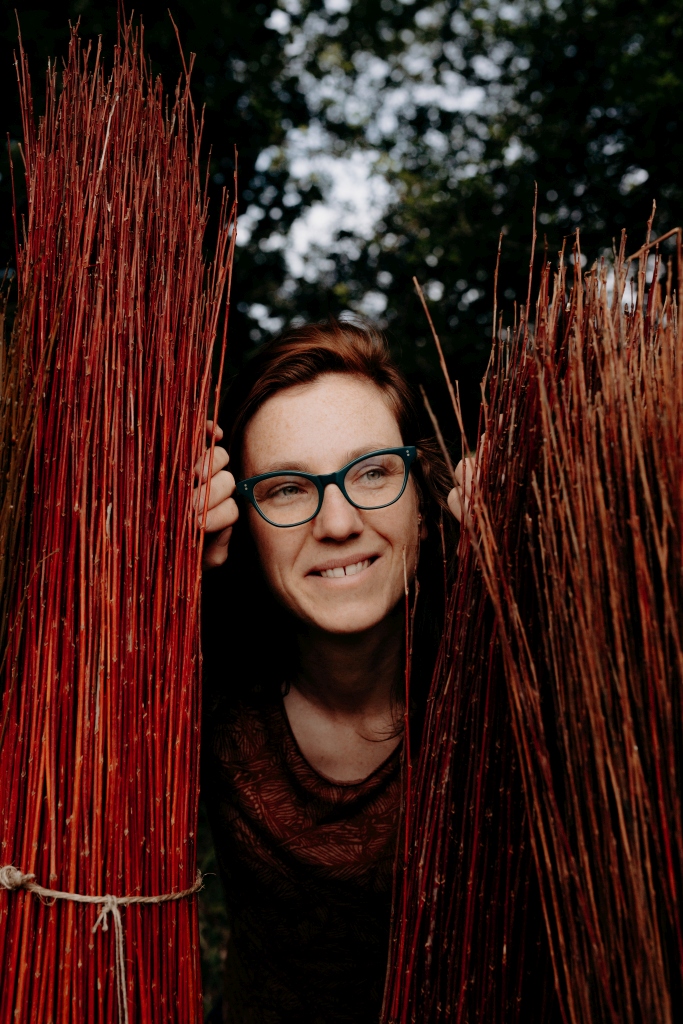 Artisane-vannière engagée dans une démarche écologique, j’ai à cœur d’amener l’osier là où on ne l’attend pas et de relever le défi de la réalisation inédite à grande ou petite échelle.
